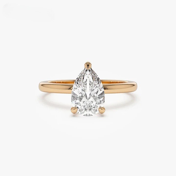 The pear cut is one of the most captivating diamond shapes, blending the brilliance of a round cut with the graceful point of a marquise. This distinctive silhouette elongates the finger and enhances visual size, offering exceptional sparkle and presence.